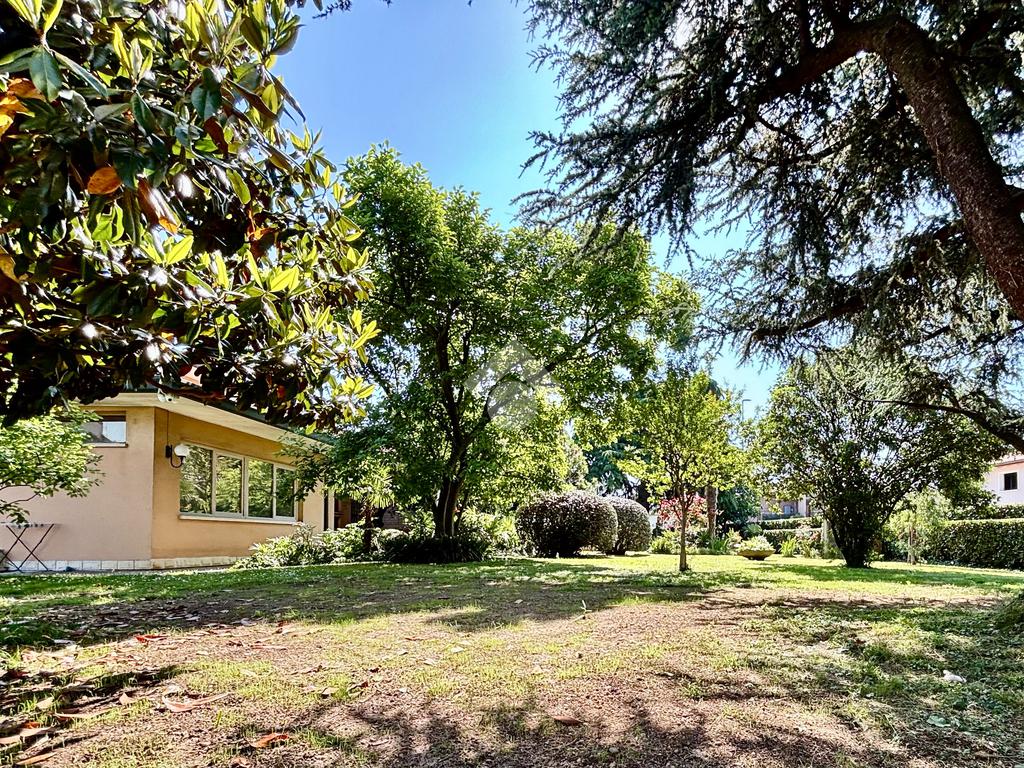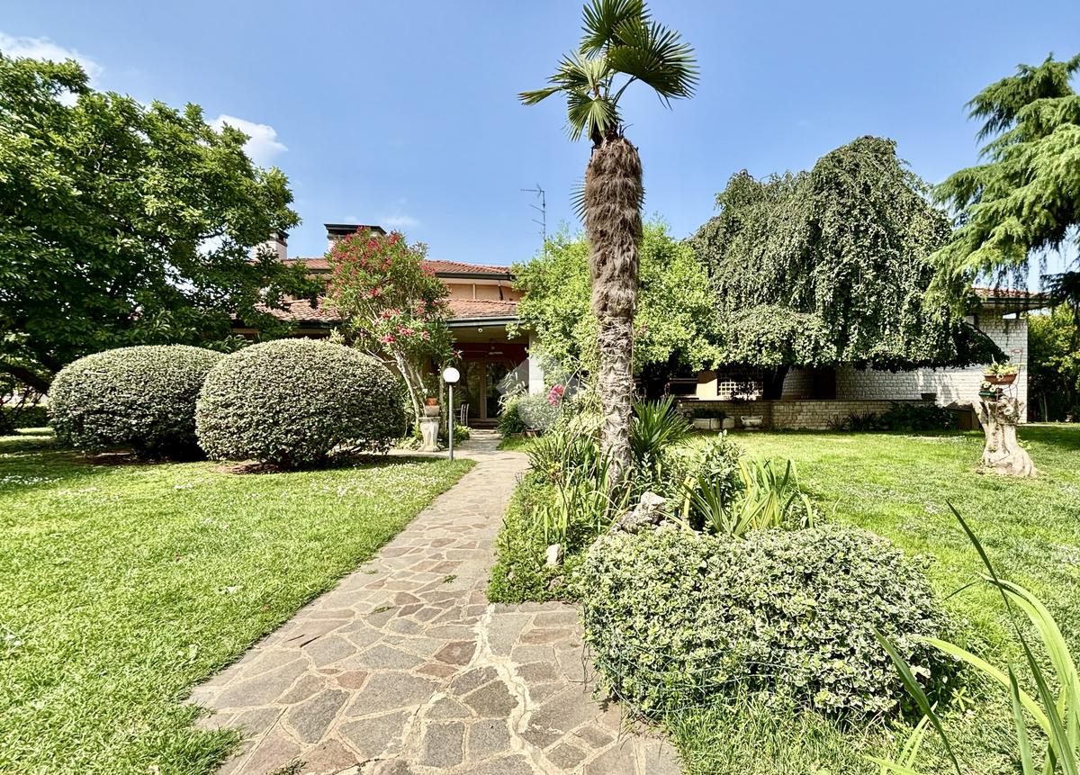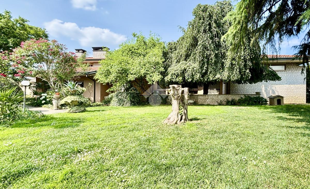 CASTEGNATO - Ubicata poco distante dal centro storico e a due passi da ogni servizio e negozio di prima necessità, a un minuto dal raccordo per la tangenziale che collega la città alla Franciacorta e alla bassa bresciana, proponiamo in esclusiva, importante proprietà di oltre 2.200 mq con villa plurifamiliare di oltre 500 mq coperti. L'immobile, perfetto per chi cerca indipendenza, spazi ampi e versatilità, è stato edificato nella metà degli anni settanta, ha una superficie totale di circa 340 mq commerciali fuori terra con circa 1.400 mc disponibili per ampliamenti o nuove costruzioni. L'abitazione attualmente è articolata su tre livelli. Il piano terra è suddiviso in ampio porticato dal quale si accede all'atrio d'ingresso che conduce all'imponente soggiorno con camino in pietra, due camere, cucina separata vivibile con accesso al giardino retrostante e bagno di servizio. Il lungo corridoio porta alla zona notte, composta da tre generose camere da letto, di cui una con bagno en suite, un ulteriore bagno con vasca e due ripostigli. Dal lato nord-ovest si accede al piano superiore, ove è presente la seconda unità abitativa. L'appartamento è ben suddiviso in zona living con cucina separata e 2 lunghe balconate esterne, bagno di servizio e corridoio che conduce a due camere, di cui una matrimoniale. Tramite scala interna si scende al piano interrato, ospitante numerose stanze, magazzini, cantine, servizi e una taverna con grande acquario a vista. Adiacente ad esse è presente l'autorimessa, comoda per più autovetture. Per una completa sicurezza, è presente un impianto di antifurto, correlato da 28 telecamere di videosorveglianza.