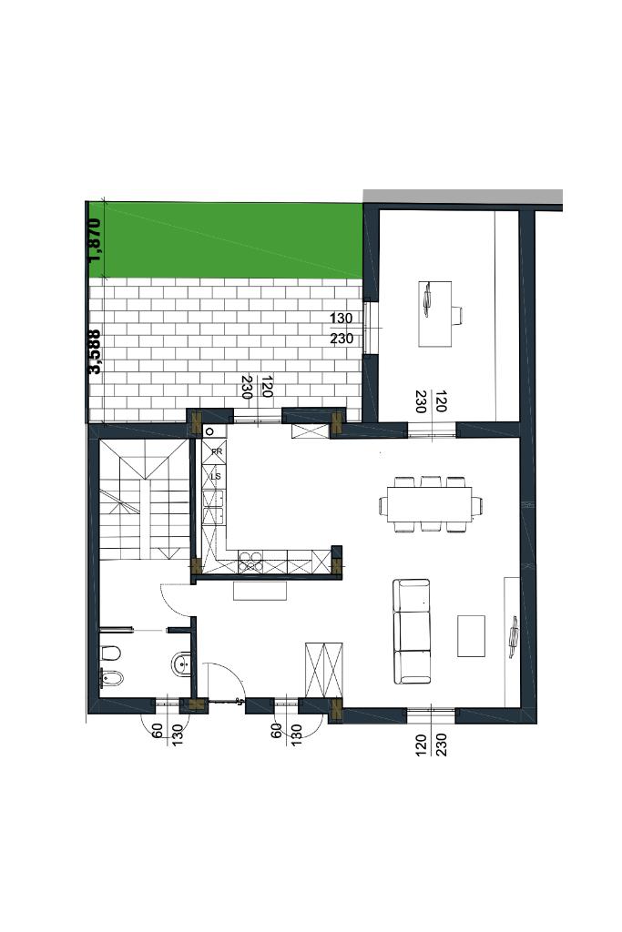 Tramite il giardino d’ingresso esclusivo si accede alla zona living, di circa 50 mq, completamente openspace e comprendente un ampio ingresso arredabile, sala da pranzo, salotto e cucina a vista vivibile che si affaccia al comodo patio esterno di oltre 100 mq ideale per pranzi e cene all’aperto, luminosa ed ampia stanza multiuso completamente con travi a vista sbiancate, disimpegno e bagno finestrato.