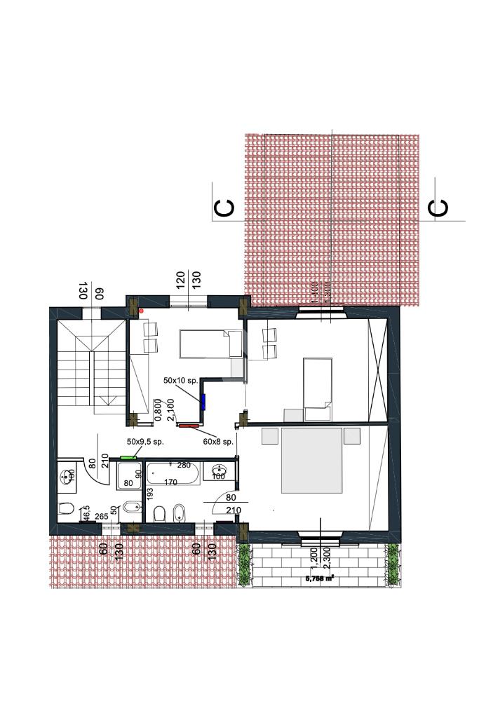 Percorrendo le scale che conducono al primo piano, si accede al reparto notte che ospita due generose camere matrimoniali di cui una con balcone, una terza camera da letto doppia e due bagni finestrati.