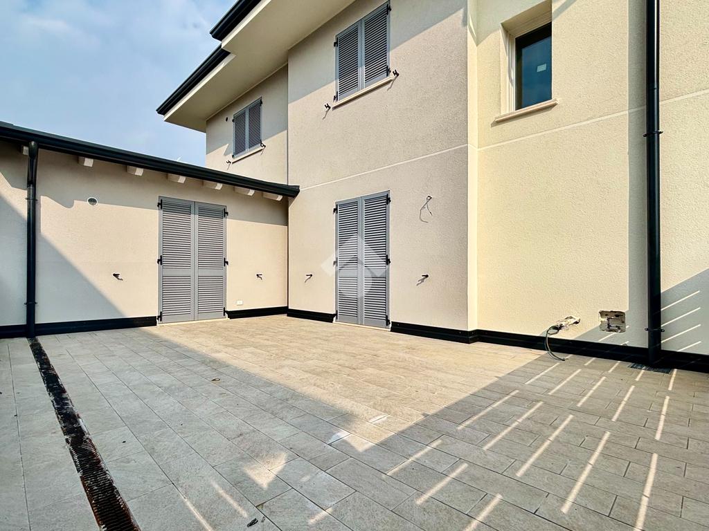 Ubicata nel centro del paese in zona residenziale tranquilla e ben servita in contesto di sole ville, proponiamo nuovissima villa bifamiliare. Moderna ed elegante soluzione progettata per garantire elevati standard di comfort e riservatezza con finiture di alto livello e tecnologie all’avanguardia garantendo una piena classe A. Disposta su tre livelli e libera su tre lati, la soluzione è ben esposta e soleggiata.