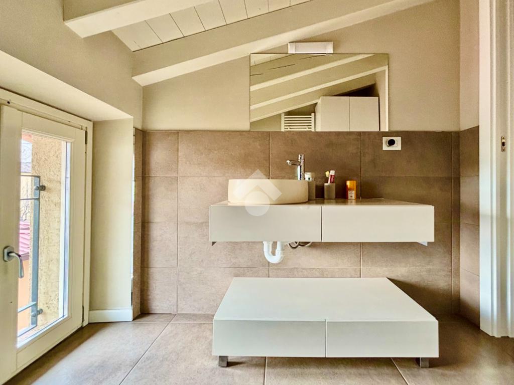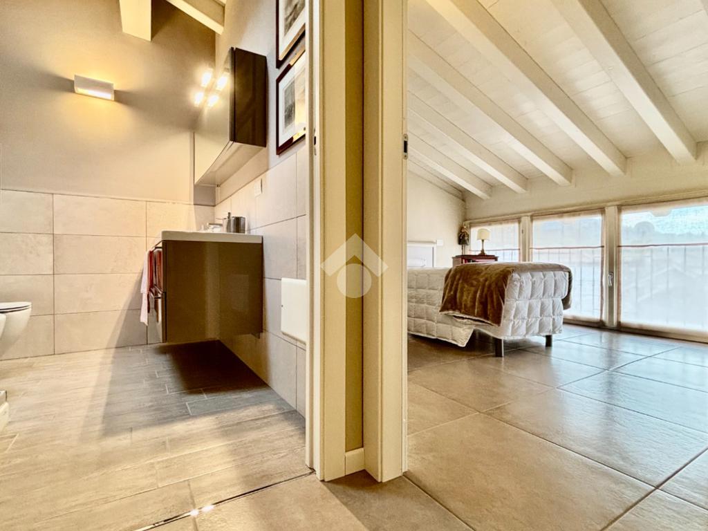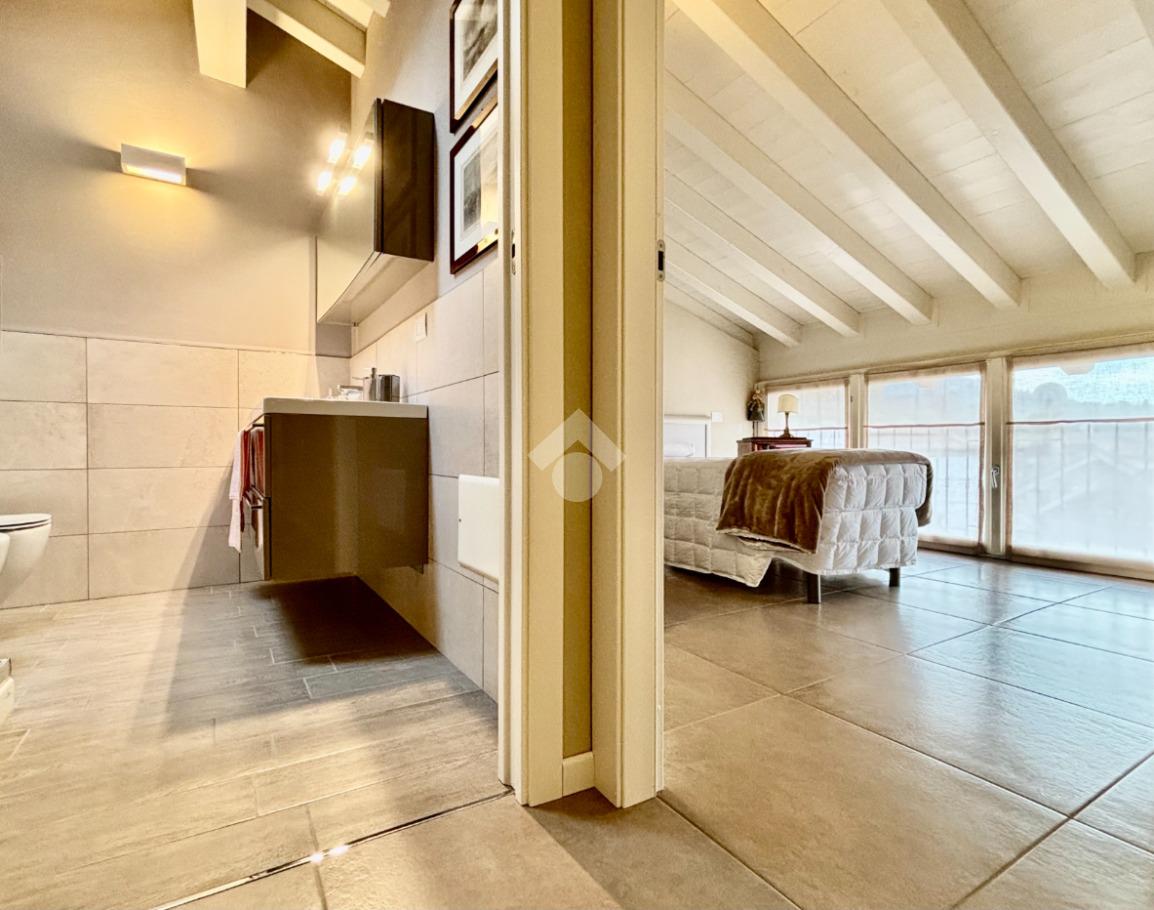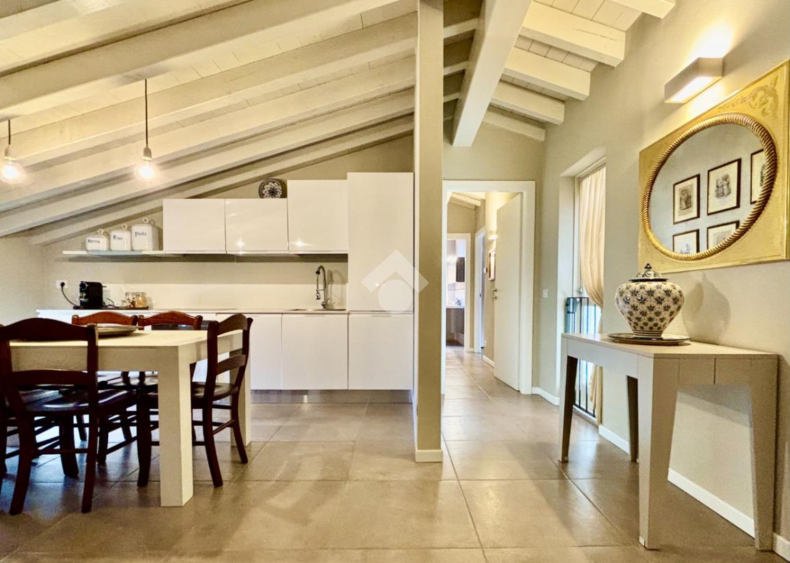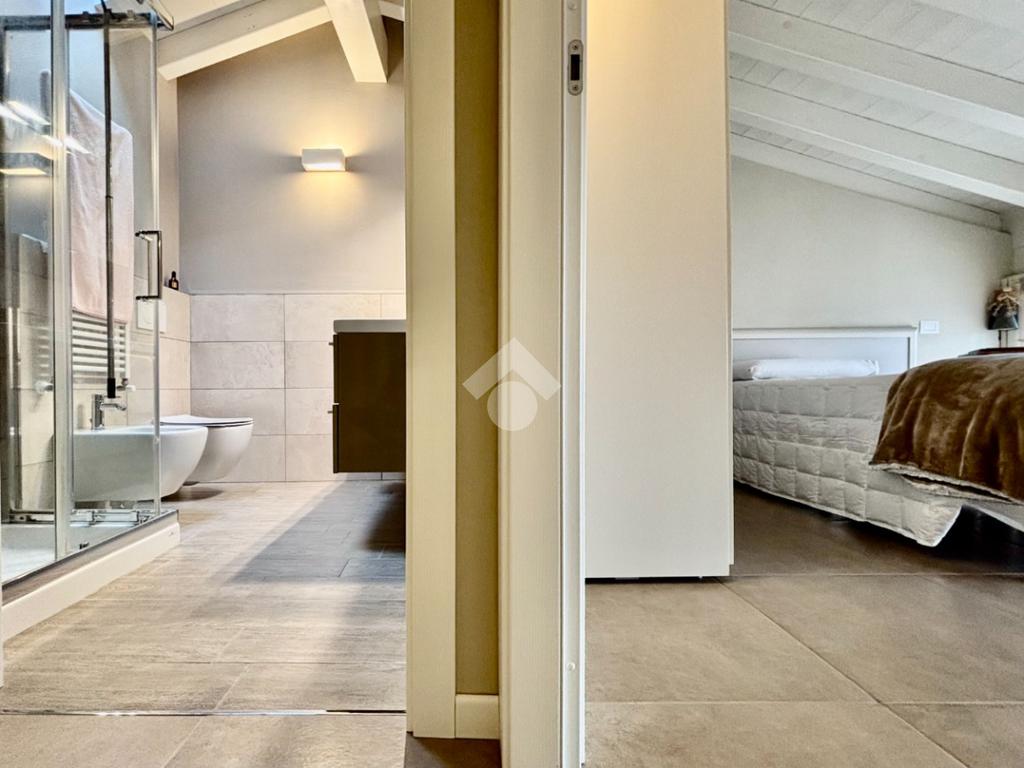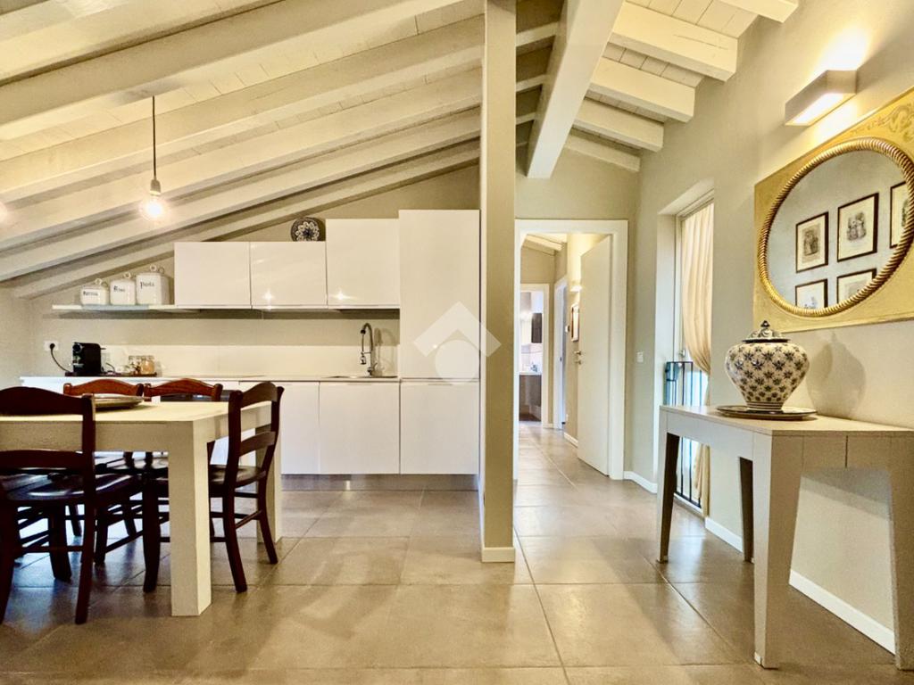 Ome - In posizione centralissima e strategica, a due passi dalla piazza del mercato e dalle principali attività commerciali, proponiamo splendida mansarda dalle ampie metrature. La costruzione risale al 2017 ed è in condizioni eccellenti. Gli ambienti sono valorizzati da eleganti travi sbiancate a vista, che conferiscono luminosità e carattere agli spazi.
