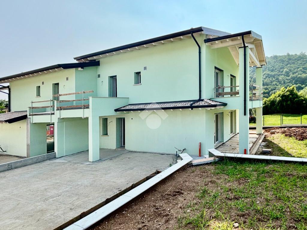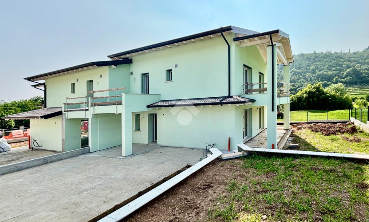OME - Ubicata in località Valle, attraversata dai torrenti Gandovere e Martignago, nella zona collinare dove si snodano boschi, prati e panorami mozzafiato, sorge nuova e moderna villa bifamiliare realizzata in piena classe A e contraddistinta da dettagli predisposti alla massima efficienza energetica e sostenibilità.