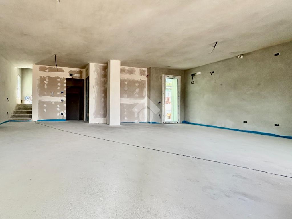 L’immobile, articolato su tre livelli, è ottimamente esposto e soleggiato e gode di ottima vista panoramica sul verde circostante. Al piano terra è presente la zona living openspace di circa 52 mq calpestabili comprendenti cucina a vista, sala da pranzo e salotto, con accesso al giardino da tutti i lati dell’abitazione, disimpegno, ripostiglio e bagno finestrato con doccia per un totale di oltre 65 mq su un unico livello. L’area esterna, di oltre 300 mq, comprende porticato di 25 mq, plateatico privato di 100 mq e verde esclusivo piantumabile di circa 200 mq con possibilità di realizzare una piscina interrata. Il primo piano ospita tre grandi camere da letto di oltre 12 mq tutte con sfogo esterno, di cui una padronale con bagno e accesso diretto alla loggia di circa 18 mq dalla quale si può godere un’invidiabile vista aperta sul verde circostante. Un secondo bagno serve le restanti stanze da letto e un pratico e funzionale ripostiglio funge da disbrigo. Al piano interrato si fa spazio la taverna finestrata, la funzionale lavanderia ed il grande box auto di oltre 40 mq.