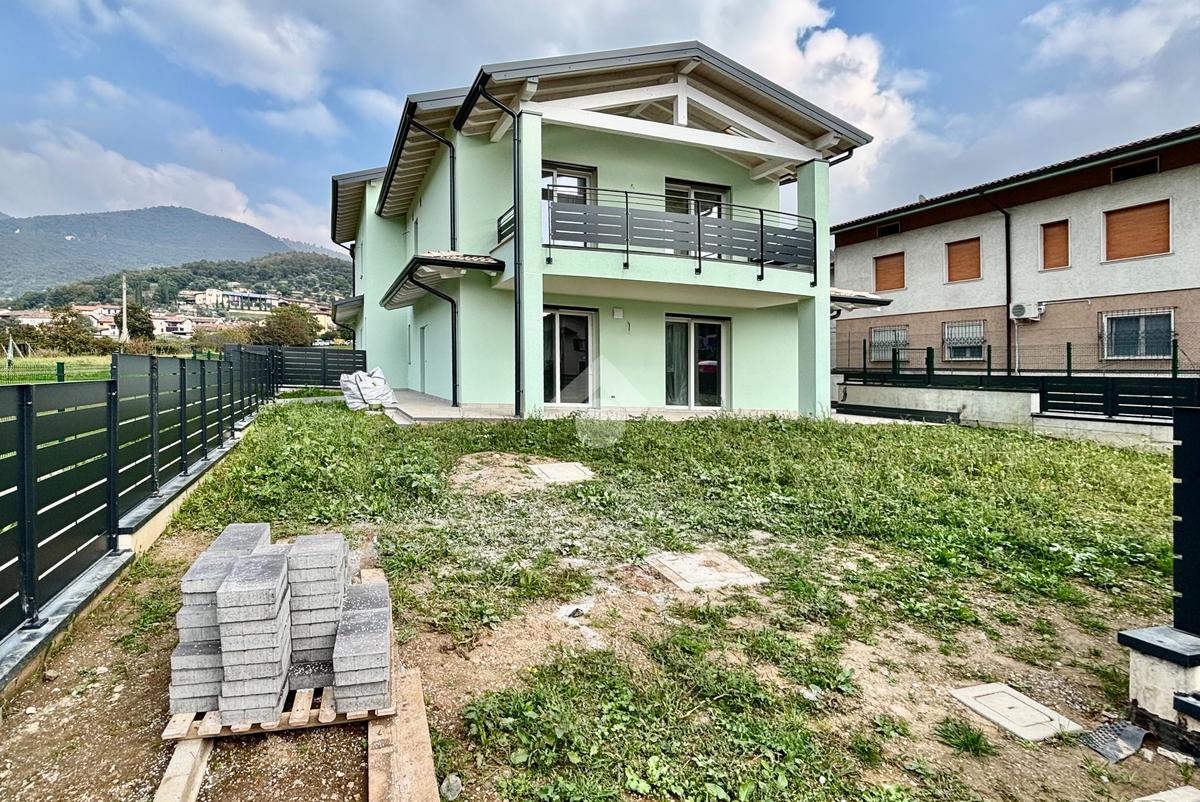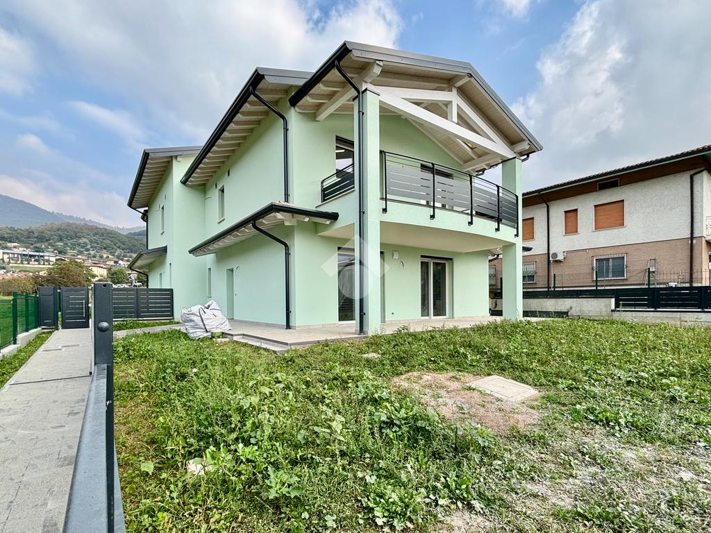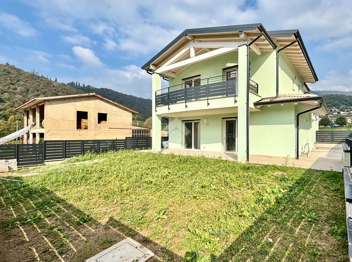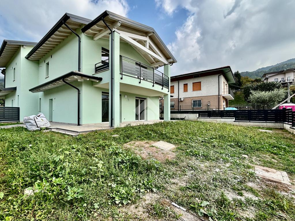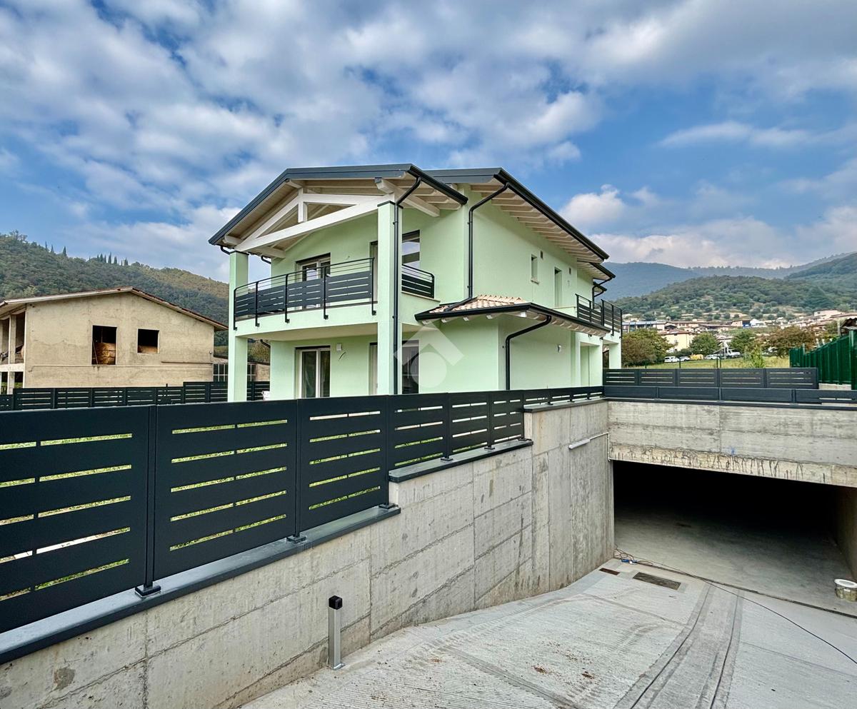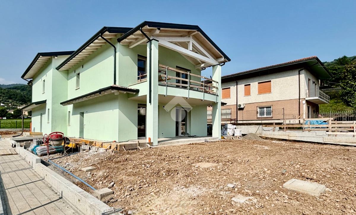 OME - Ubicata in località Valle, attraversata dai torrenti Gandovere e Martignago, nella zona collinare dove si snodano boschi, prati e panorami mozzafiato, sorge nuova e moderna villa bifamiliare realizzata in piena classe A e contraddistinta da dettagli predisposti alla massima efficienza energetica e sostenibilità.