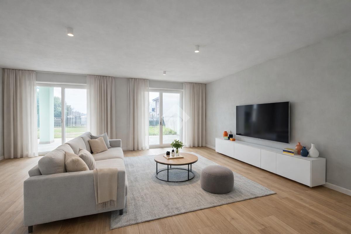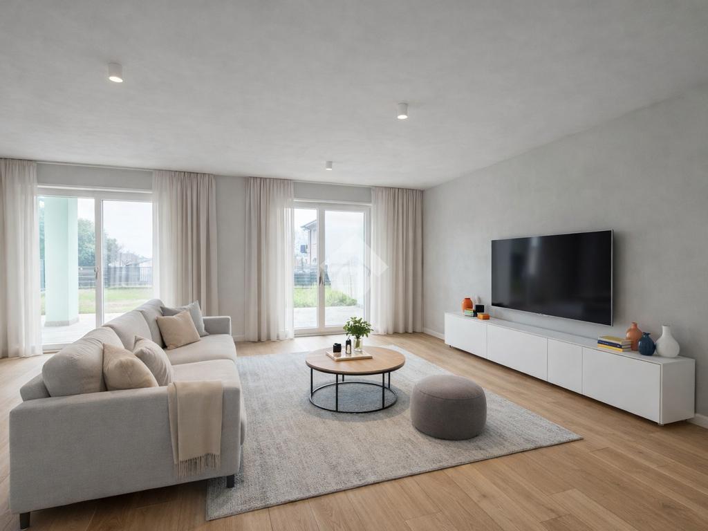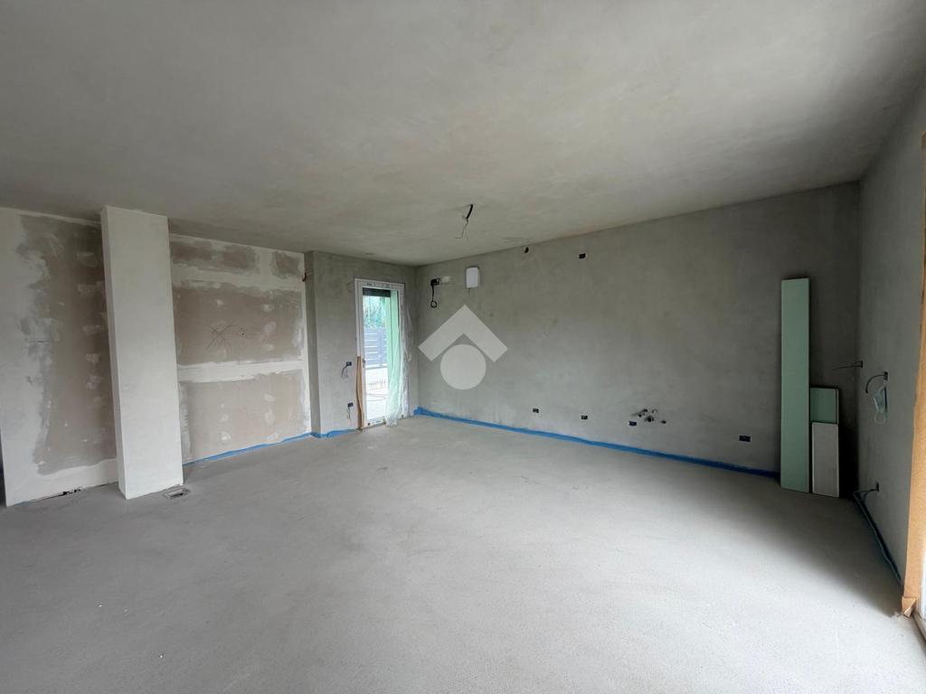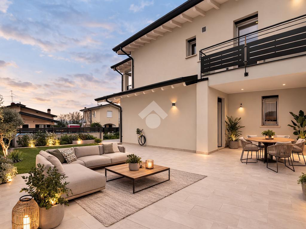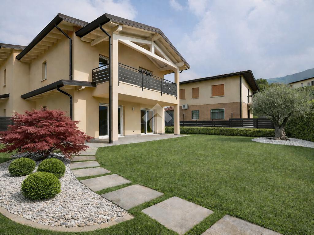 In elegante contesto residenziale immerso nel verde, proponiamo prestigiosa villa indipendente di nuova costruzione, caratterizzata da finiture ricercate e da un’elevata qualità costruttiva. L’architettura è impreziosita dalla presenza di travi a vista sbiancate su tutti gli aggetti esterni, elemento distintivo che conferisce charme e personalità all’immobile. La tecnologia impiantistica è progettata per garantire massimo comfort abitativo: riscaldamento a pavimento con regolazione autonoma della temperatura in ogni ambiente e sistema di raffrescamento tramite ventilconvettori installati in tutte le stanze. L’accurato isolamento termico e acustico assicura ambienti silenziosi, efficienti e confortevoli durante tutto l’anno. La proprietà si sviluppa su tre livelli, gode di ottima esposizione solare e offre una suggestiva vista panoramica sul verde circostante. Piano terra Ampia e luminosa zona living openspace di circa 52 mq calpestabili, con cucina a vista, zona pranzo e soggiorno. Tutti gli ambienti hanno accesso diretto al giardino che circonda l’abitazione. Completano il livello disimpegno, pratico ripostiglio e bagno finestrato con doccia, per una superficie complessiva di oltre 65 mq su unico piano. Spazi esterni L’area esterna privata supera i 300 mq e comprende: – porticato coperto di circa 25 mq, ideale per pranzi e momenti di relax all’aperto – plateatico esclusivo di circa 100 mq – giardino privato piantumabile di circa 200 mq, con possibilità di realizzare piscina interrata Piano primo Zona notte composta da tre ampie camere da letto di oltre 12 mq, tutte con sfogo esterno. La camera padronaledispone di bagno privato e accesso diretto alla loggia panoramica di circa 18 mq, perfetta per godere di una vista aperta e riservata. Un secondo bagno serve le altre camere, oltre a un comodo locale ripostiglio/disimpegno. Piano interrato Spaziosa taverna finestrata, funzionale locale lavanderia e grande autorimessa di oltre 40 mq, ideale anche per più veicoli o per uso deposito. Soluzione abitativa di assoluto pregio, perfetta per chi desidera indipendenza, ampi spazi interni ed esterni, elevata efficienza energetica e qualità costruttiva, in posizione tranquilla ma comoda ai servizi.