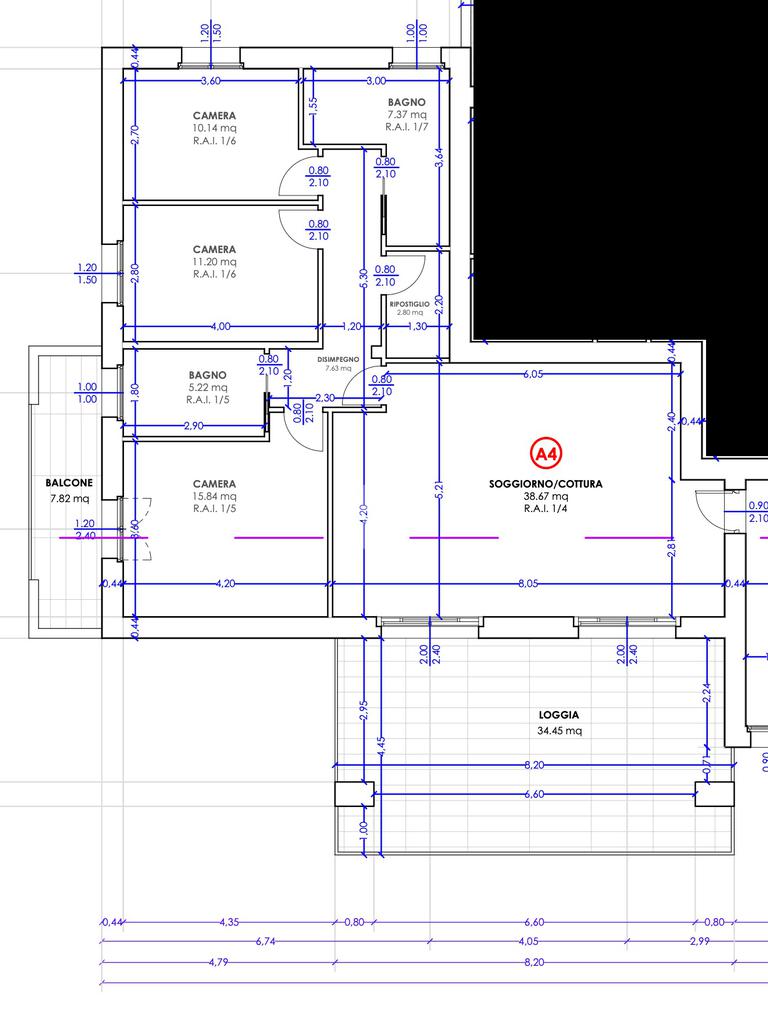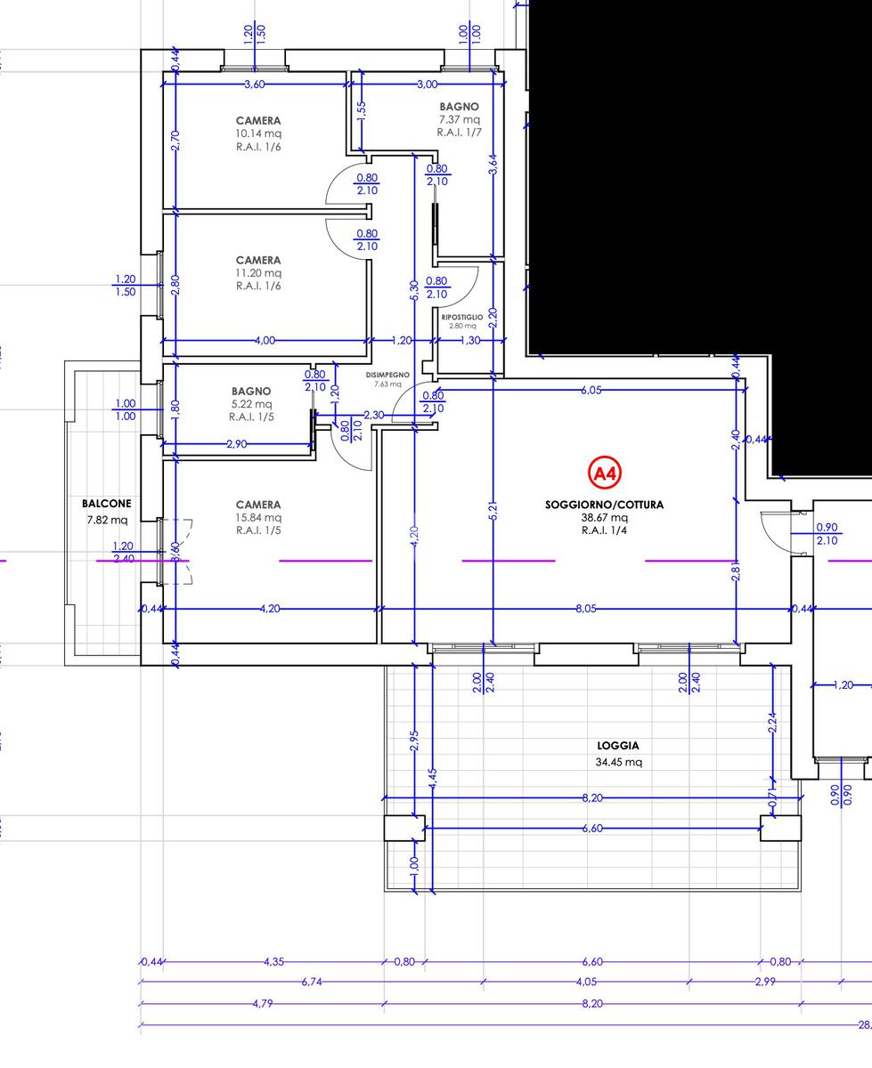 L'appartamento quadrilocale al piano attico con terrazzo di circa 40 mq e portico di oltre 19 mq che possono ospitare un ampio tavolo e divani da esterno oltre ad una piccola jacuzzi, si caratterizza di tripla esposizione che ne garantisce luce naturale e privacy valorizzando maggiormente gli spazi interni distribuiti interamente su piano unico: ampio living open-space di quasi 40 mq, tre camere matrimoniali grandi, doppi servizi finestrati e pratico ripostiglio. Al piano interrato, box auto di oltre 45 mq.