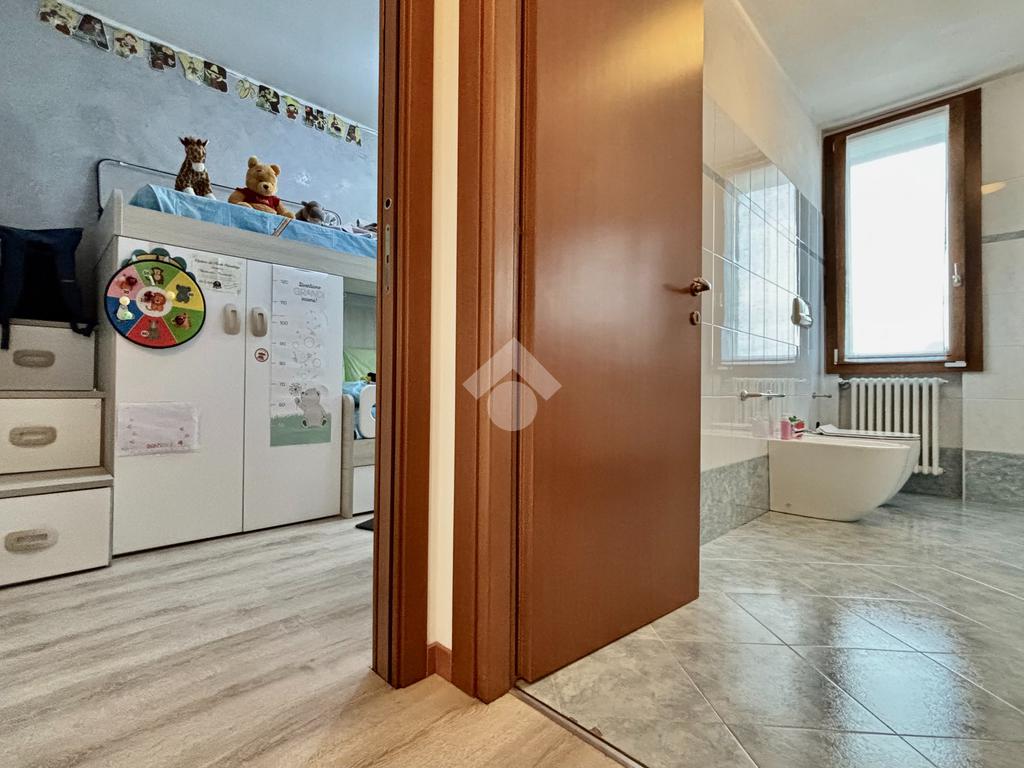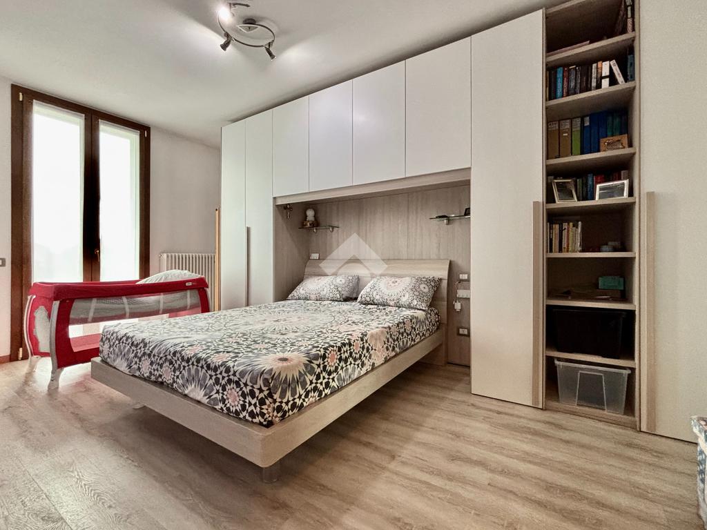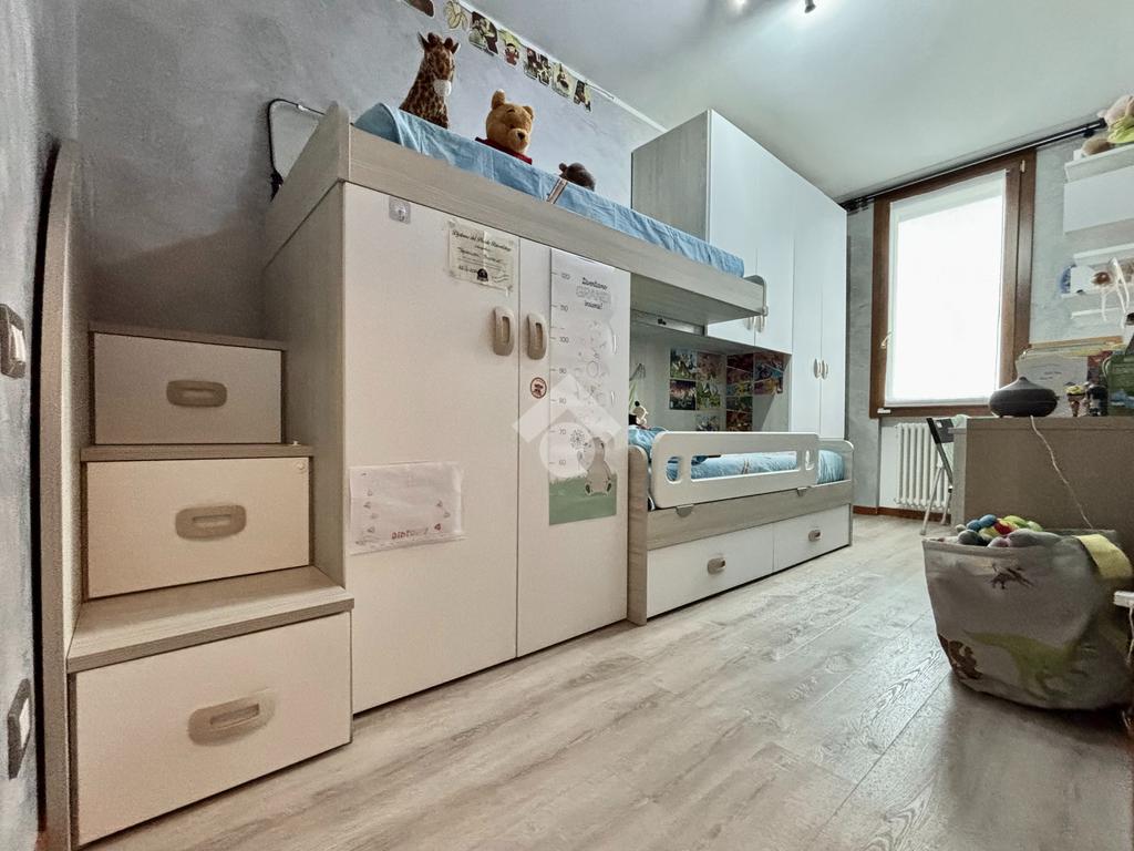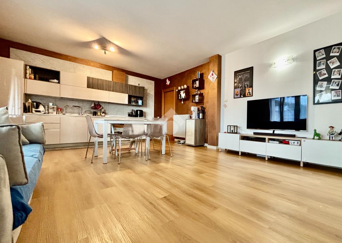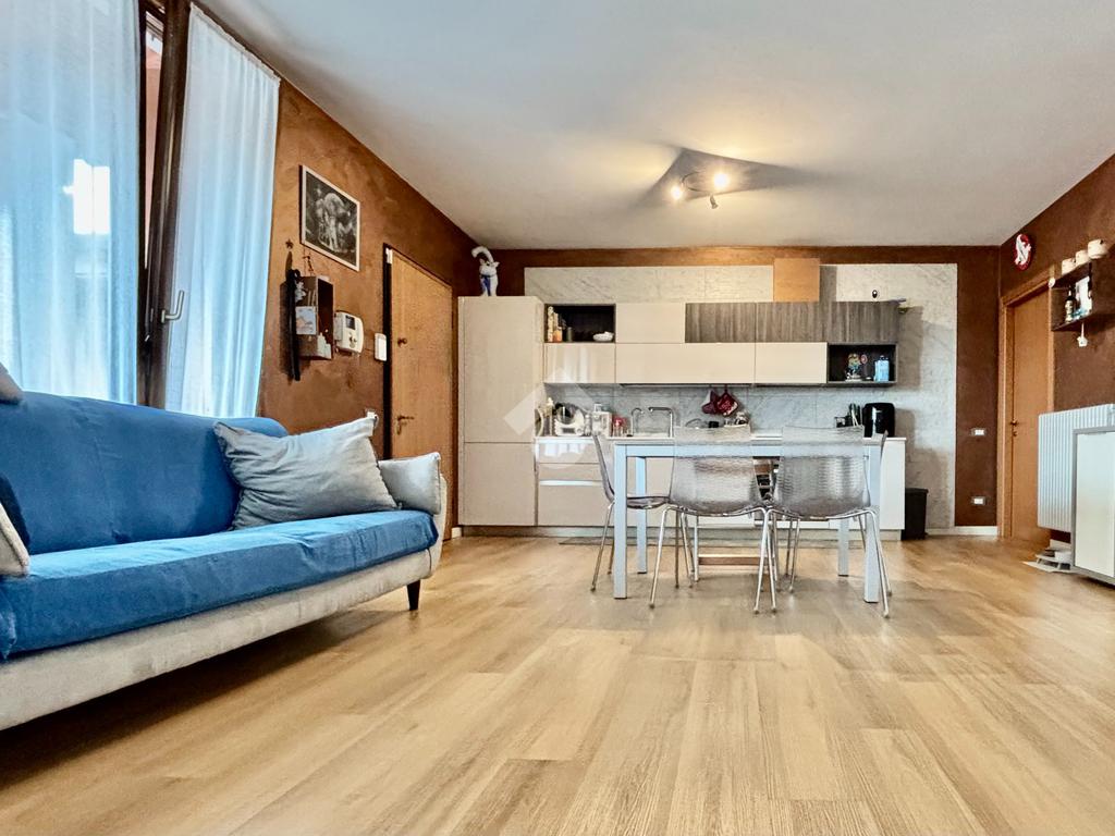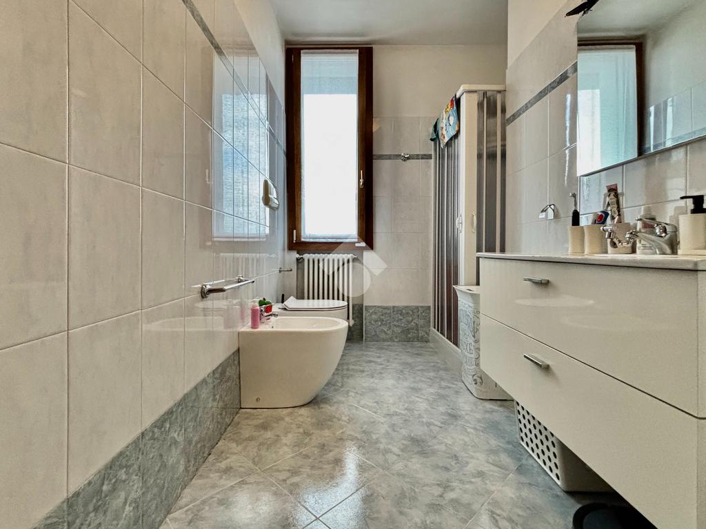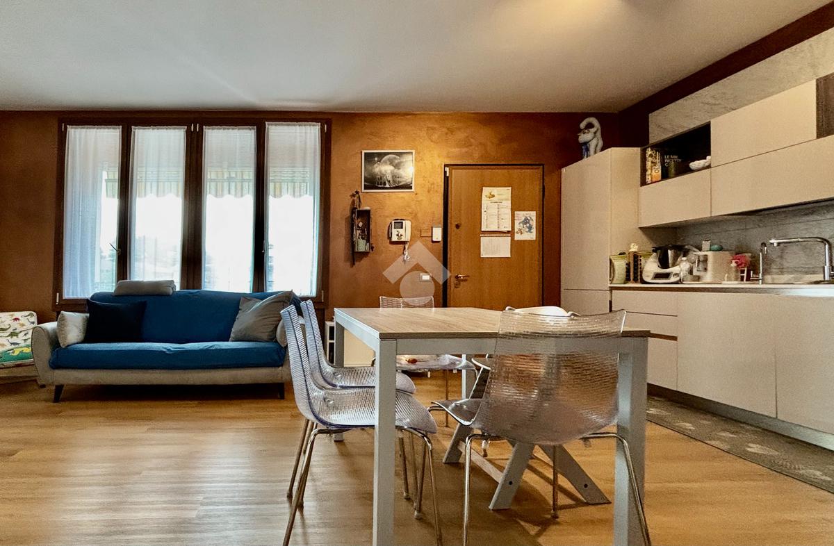La soluzione si apre su un luminoso soggiorno con cucina a vista, ambiente ben esposto alla luce grazie all’ampia finestra a triplo battente. Da qui si accede alla loggia, perfetta per godersi momenti di relax all’esterno. La zona notte ospita una spaziosa camera matrimoniale con balcone, una seconda cameretta e un bagno finestrato con doccia e lavanderia. Completano la proprietà un posto auto esclusivo situato all’interno della corte e un box doppio in lunghezza nel piano interrato.
