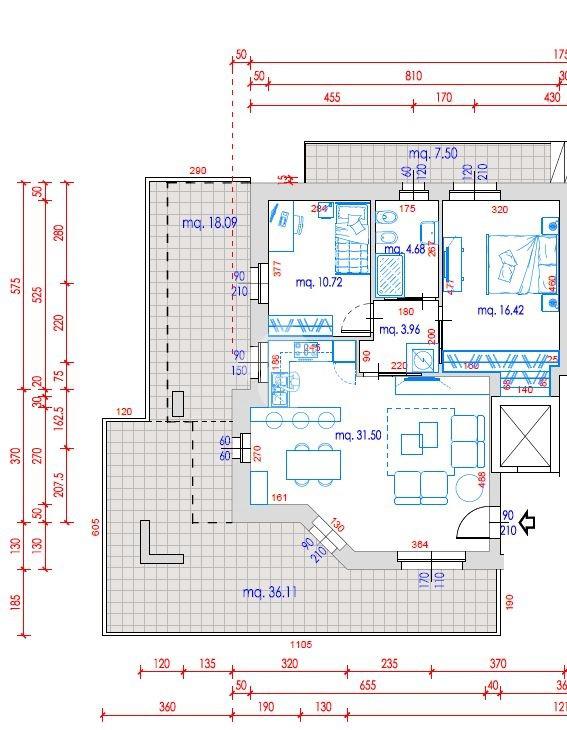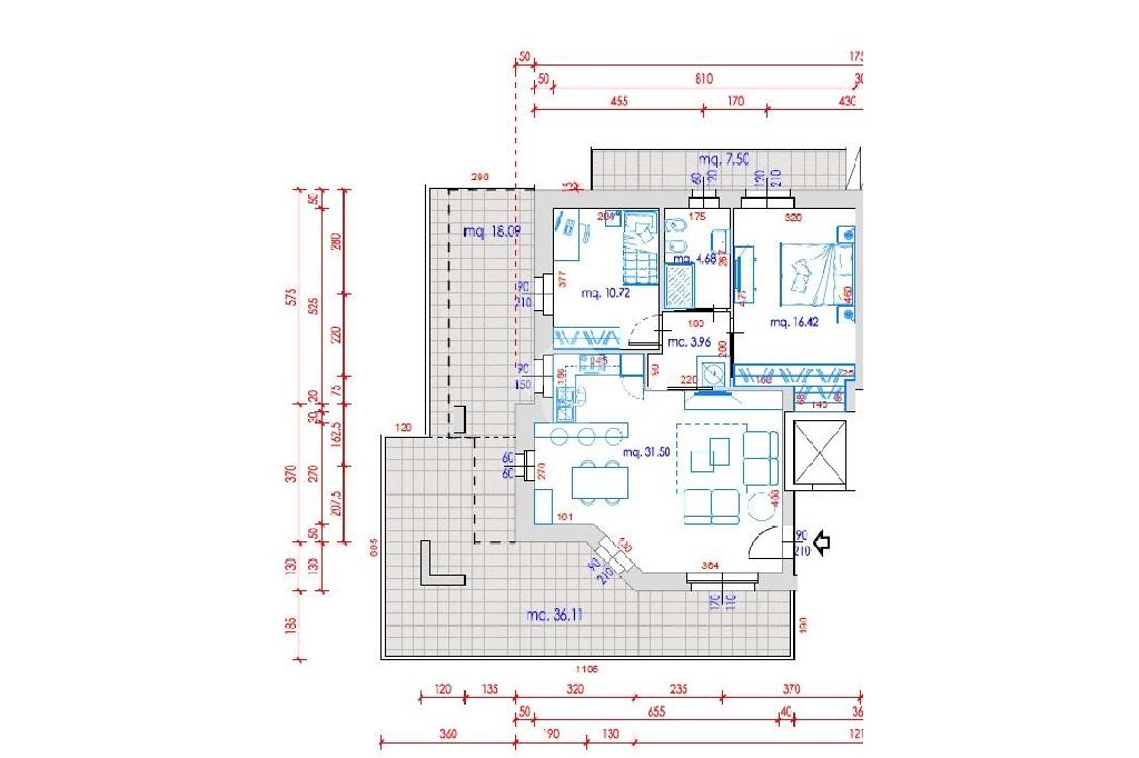 Tra le soluzioni disponibili, l'Attico rappresenta un perfetto equilibrio tra raffinatezza e comfort. Situato al secondo ed ultimo piano con accesso diretto al piano interrato tramite ascensore, questa residenza unica si distingue per la presenza di un'esclusiva terrazza coperta di oltre 50 mq, perfetta per trascorrere piacevoli momenti all'aria aperta, cene sotto le stelle godendo dall'aera barbecue, o semplicemente per prendere il sole in assoluto relax. L'ampia zona living di quasi 32 mq calpestabili con cucina a vista si fonde armoniosamente con l'outdoor, creando un ambiente luminoso e accogliente. La zona notte è pensata per offrire privacy e massimo comfort: spaziosa camera matrimoniale, dotata di cabina armadio e balcone, si affianca ad una generosa camera singola, ideale per accogliere la famiglia o essere trasformata in studio o stanza per gli ospiti. Il bagno, finestrato e con ampia doccia, unisce estetica e funzionalità per un'esperienza abitativa all'insegna del benessere quotidiano.