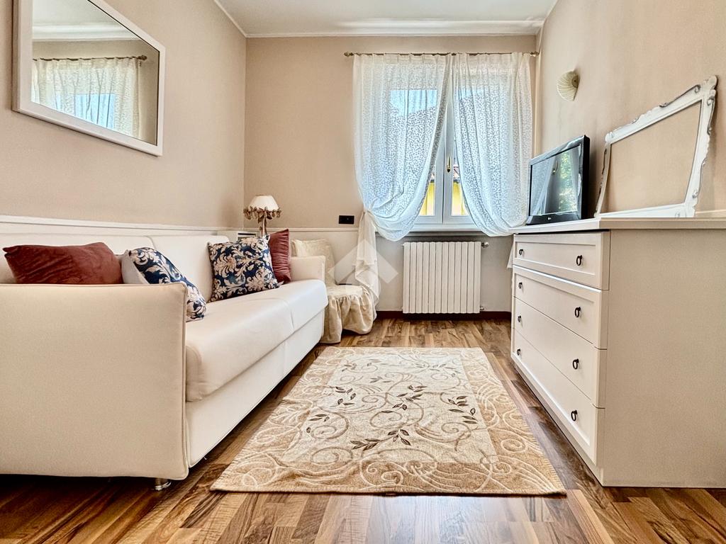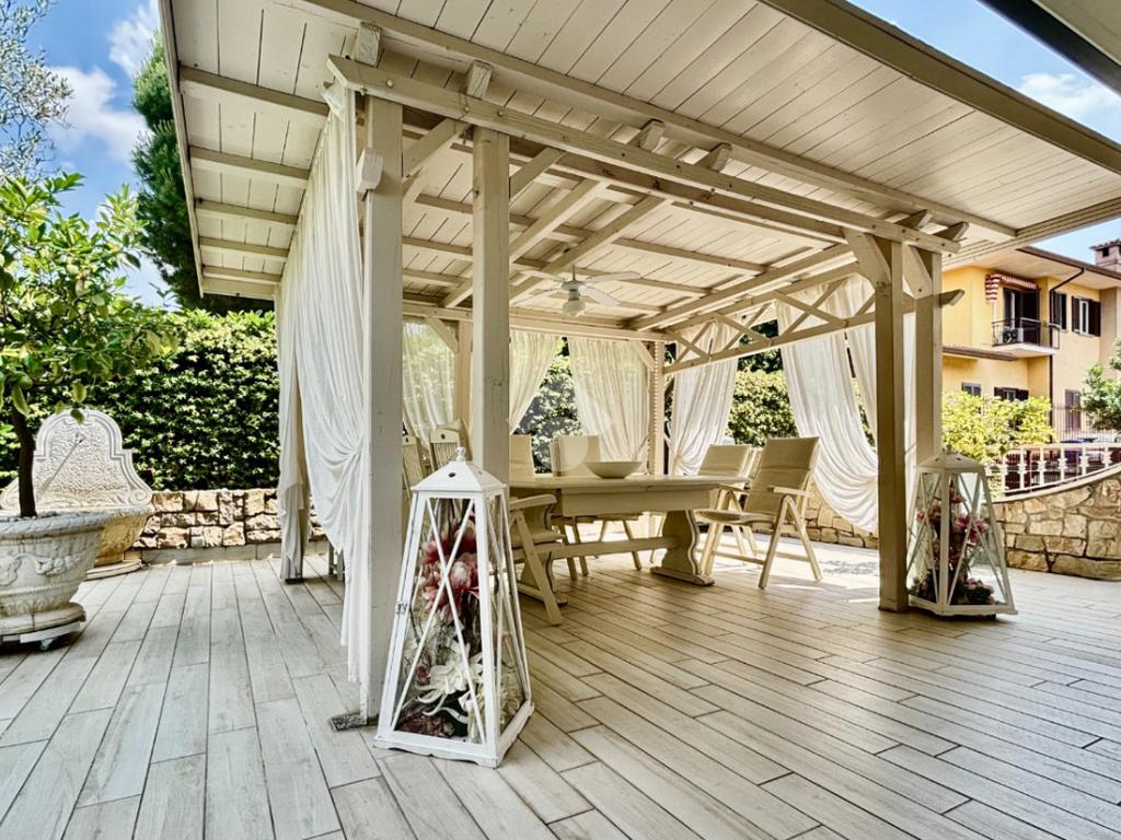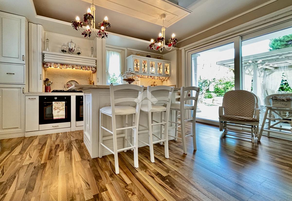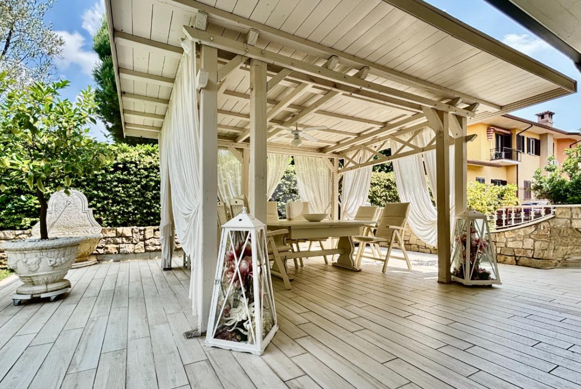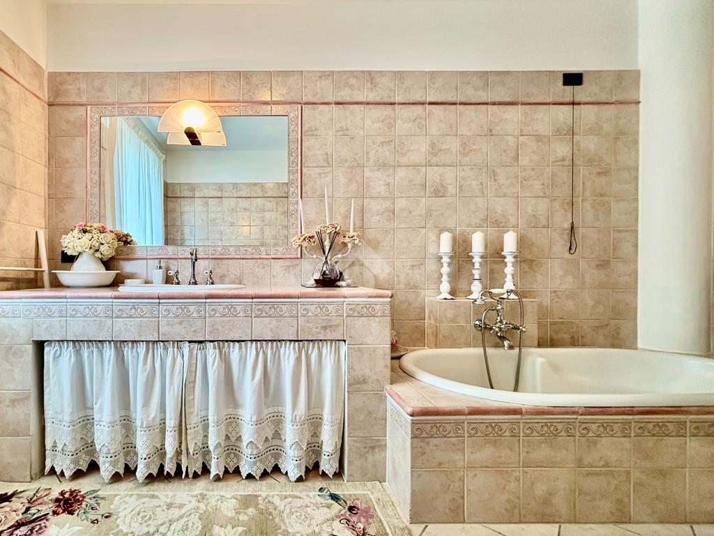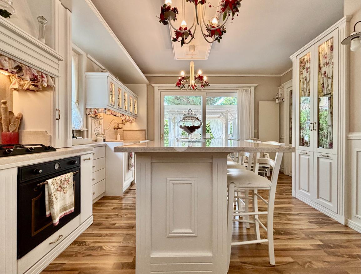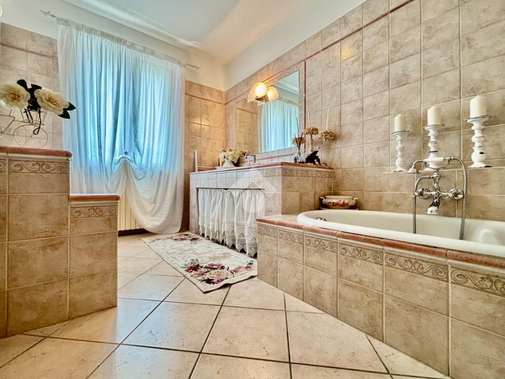La villa è circondata da un curato e ben piantumato giardino privato, ove vi è la possibilità di realizzare una piscina interrata. Un pratico scivolo conduce poi al piano interrato, posizionato sul retro della casa e non visibile dalla facciata principale, garantendo così ulteriori posti auto scoperti per ospiti. Impianto di antifurto rifatto nel 2024, batteria di accumulo da 20 kWh, colonnina per la ricarica delle auto elettriche, un videocitofono per piano, impianto di irrigazione, caldaia ibrida di ultima generazione (elettrica e a metano) e la realizzazione di un tetto ventilato, sono solo alcuni degli accorgimenti e delle migliorie che valorizzano la soluzione, maniacalmente curata e tenuta.
