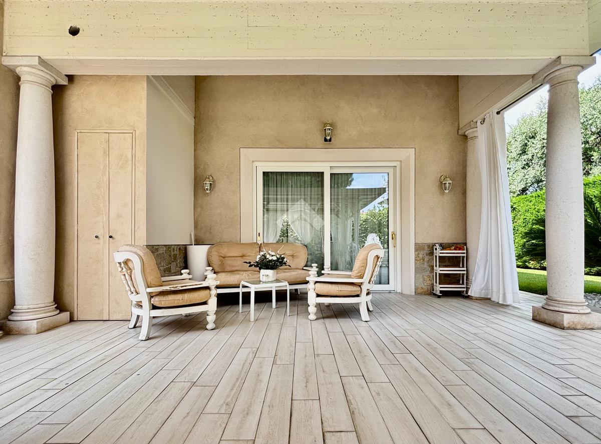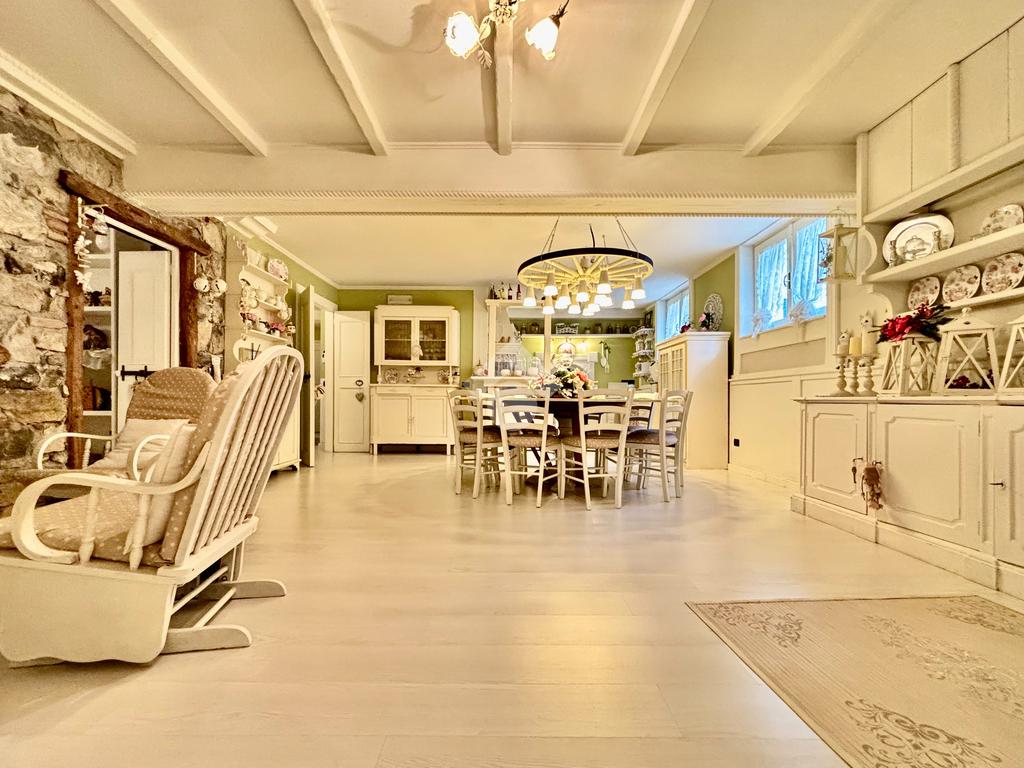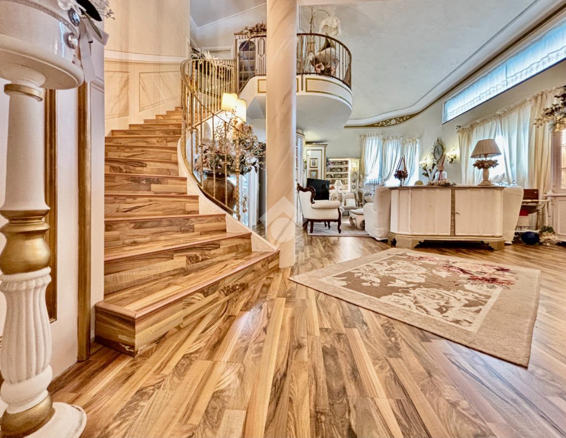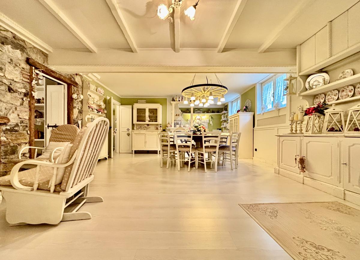 Prestigiosa proprietà con elevatissimo livello di finiture, design ricercato e materiali di pregio che impreziosiscono l’immobile rendendolo unico, come il pavimento in legno color noce nazionale, la pietra naturale a vista del Credaro, marmi e ceramiche di altissima qualità. Ristrutturazioni totali nel 2017 e nel 2023 che garantiscono la massima efficienza energetica e comfort abitativo, con cappotto esterno, serramenti in triplo vetro di ultima generazione e impianto fotovoltaico da 8kWh con batterie di accumulo. Il piano terra accoglie una luminosa ed elegante zona living a doppia altezza di circa 52 mq, comprendente sala da pranzo e zona conversazione con camino in marmo, valorizzata dalle ampie aperture che inondano gli ambienti di luce naturale. La cucina di circa 19 mq è separata, abitabile e completa di dispensa, con accesso al vivibile patio esterno e al pergolato. Il corridoio conduce alla prima zona notte, suddivisa in due camere da letto e importante bagno finestrato completo di lavabo e vasca da bagno in muratura. La scenografica scala a vista elicoidale conduce al piano superiore, ove si apre un suggestivo ballatoio che si affaccia sulla sala da pranzo. Su questo livello si sviluppa la camera padronale con cabina armadio, un bagno finestrato con doccia e uno studio. Entrambi gli ambienti affacciano su balconi privati. Il piano interrato, esteso su circa 140 mq, è stato progettato per offrire comfort e funzionalità. La taverna è dotata di una cucina a vista completamente attrezzata e un forno professionale a legna, ideale per preparare pizze e organizzare cene conviviali. Un elegante camino bifacciale collega questo ambiente ad un'accogliente area relax, arredata con comodi divani. Completano il tutto una stanza hobby, una palestra, una lavanderia e un bagno con doccia, offrendo così spazi dedicati a diverse attività. Collegata direttamente all’abitazione è presente l’autorimessa di oltre 80 mq, che può ospitare fino a cinque vetture.